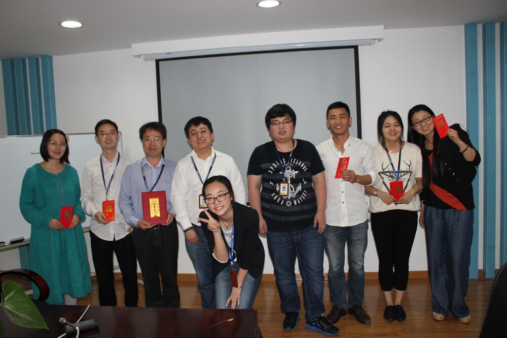 總裁章權(quán)偉、產(chǎn)品總監(jiān)金磊為獲得創(chuàng)新激勵的陸特創(chuàng)新達人頒獎。