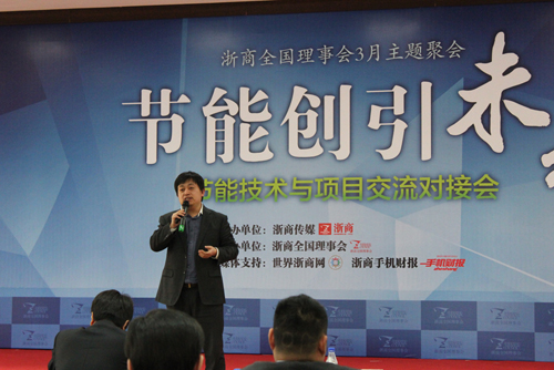 3月28日,陸特能源受邀出席由浙商全國理事會主辦的“節(jié)能創(chuàng)引未來——節(jié)能科技企業(yè)及項目對接洽談會",章權(quán)偉副總裁代表 公司參加會議,并發(fā)表了精彩的演講。章總在演講中簡要介紹了陸特的基本情況,提出節(jié)能企業(yè)發(fā)展要以市場為基礎(chǔ),受到了現(xiàn)場企業(yè)家代表及主辦方的好評。