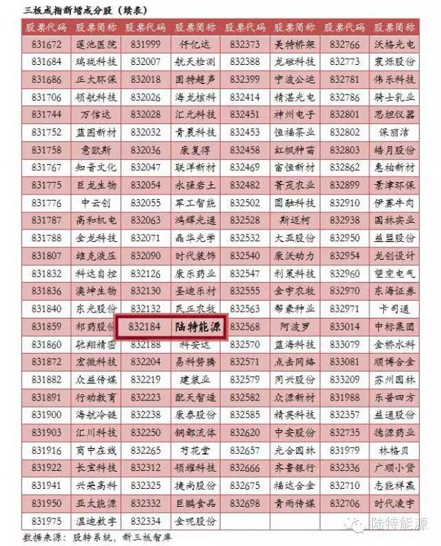 陸特能源(832184)新晉新三板成份指數(shù)股