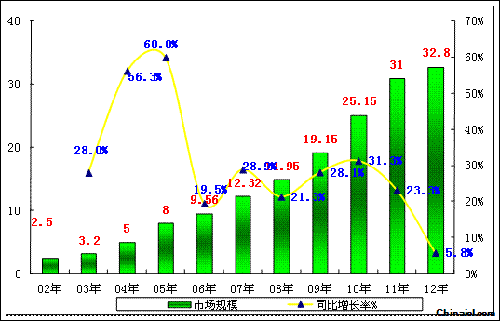 2002-2012年中國水/地源熱泵市場規(guī)模走勢